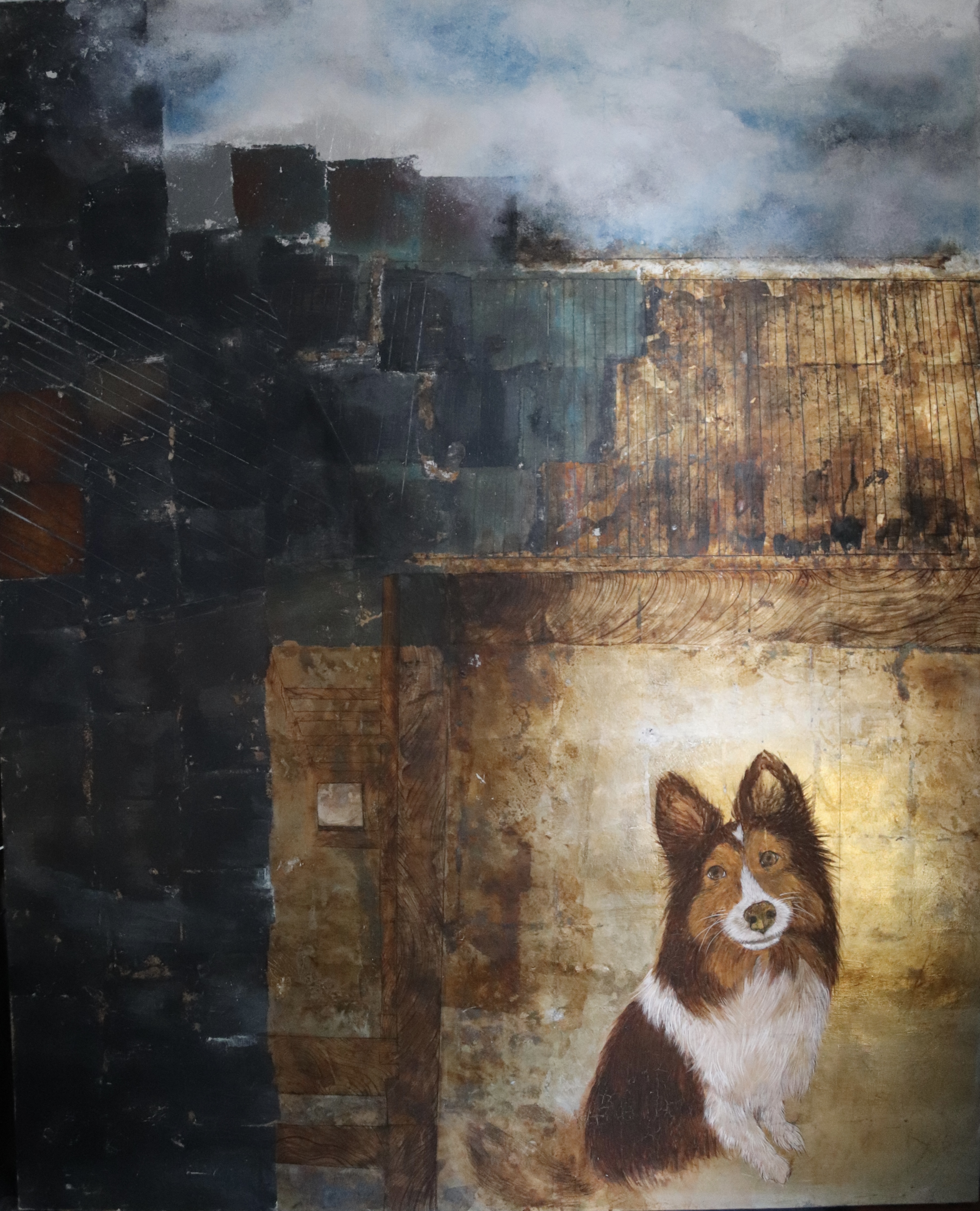 | 작품설명 | 지니를 다시 만나고 싶은 나의 바램이다. 청박과 흑박으로 형상화한 집은 내가 태어난 고향 집이다. 푸른 기와를 올린 한옥 지붕은 길 찾기 위한 이정표이며 마루, 기둥, 보 등의 나무결은 그리운 시간의 반복이다. 뫼비우스의 띠처럼 다시 시작될 그날, 시작이 되었던 그곳에서 지니가 기다리면 좋겠다. 우리의 재회는 반가울 기다림이기에 최대한 따스한 색감으로 표현하였다. |