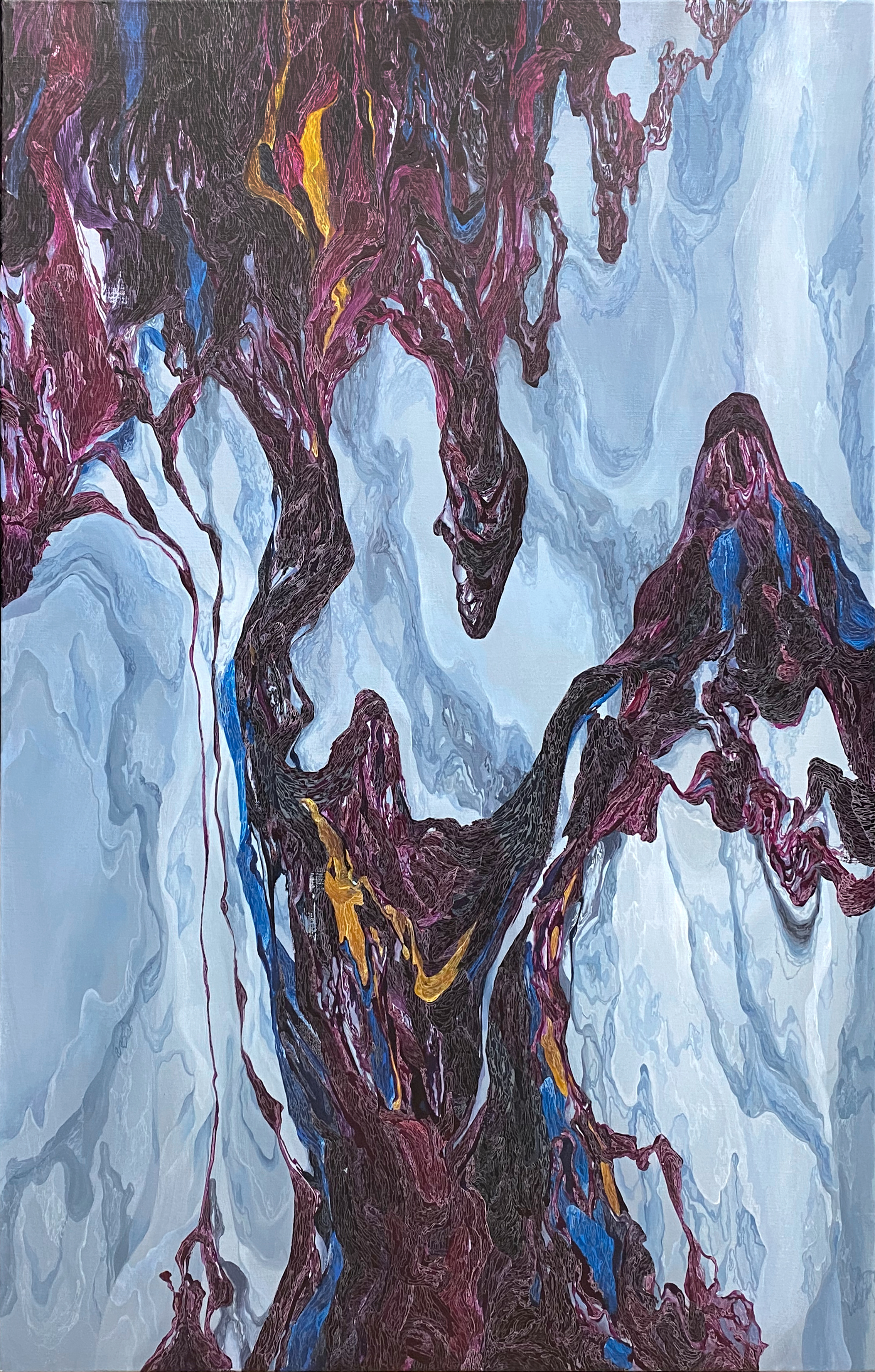 반복적이면서도 유동적인 리듬은 화면 위에 축적되고, 선과 여백, 밀도의 조합은 마치 자연의 내부를 들여다본 조감도처럼 삶의 층위를 가시화한다. 화면의 밀도와 흐름 속에 쌓인 흔적들은 단순한 조형을 넘어서 내면의 감각과 사고가 교차하는 장으로 확장되며, 추상과 구상의 경계를 유영하는 시선을 유도한다. 이 구성은 감정과 존재가 충돌하고 뒤엉키는 복합적인 지점을 회화적으로 풀어내는 하나의 장치가 된다.