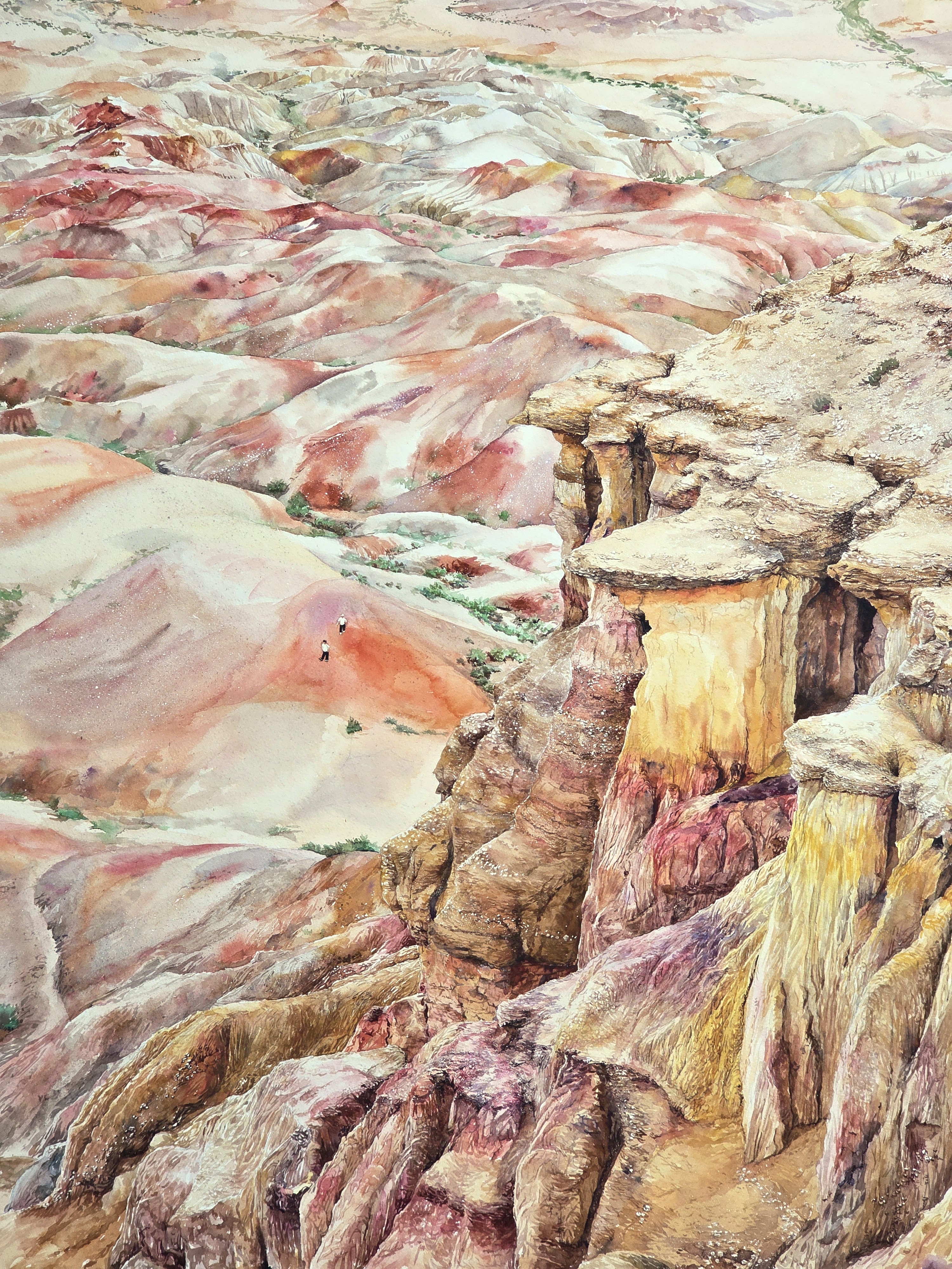 작품설명 | 호모 비아토르(Homo Viator)는 '길 위의 인간'이라는 뜻으로 고난 속에서도 나아가는 인간의 의지를 상징합니다. 두 사람은 험난한 산맥과 암벽 앞에서 두려움과 마주할 때도 있지만 마음이 이끄는 대로 서로를 의지하며 걸음을 내딛습니다. 이 여정을 통해 지나온 길에 우리의 발자국이 남아 얼마나 아름답고 가치 있는 흔적이 될 수 있는지를 보여주고자 합니다. |