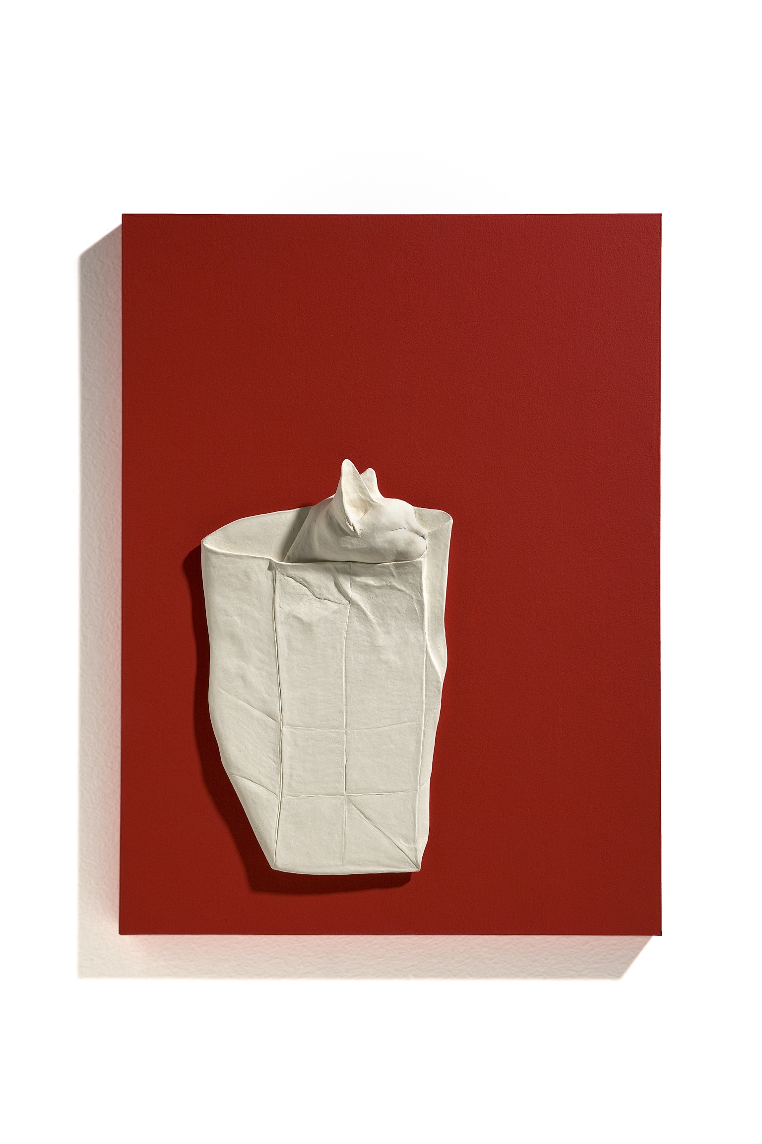 흙을 이용해 손 성형한 도조 작품으로 1,250도의 고온 소성을 마쳤으며 유약 없는 상태로 매트한 흙의 질감과 섬세한 표정을 잘 보여 줍니다. 봉투에 들어간 고양이 세라믹은 나무 판에 부착 되어있고, 이것은 컬러 패널에 설치되어 있습니다.