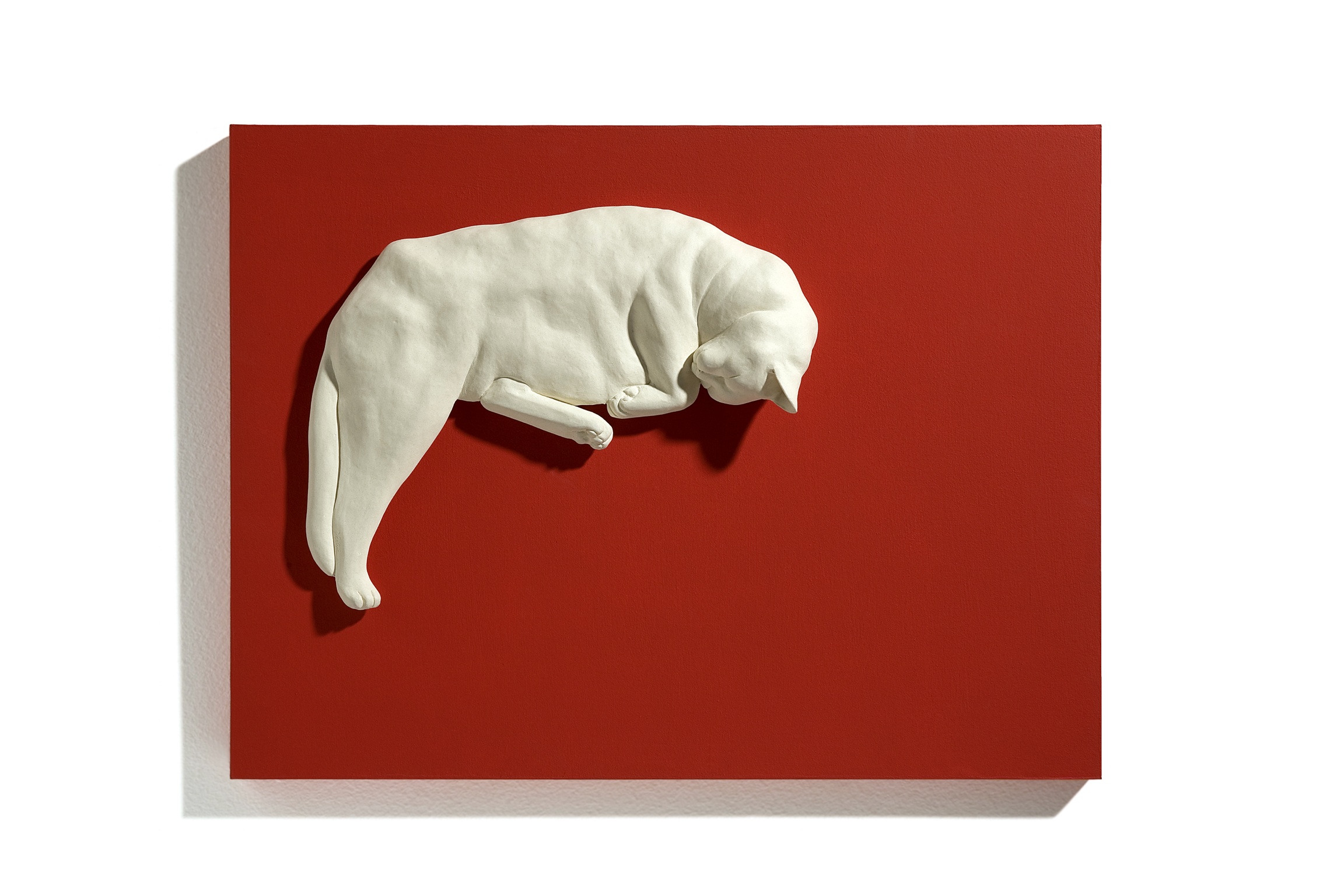 흙을 이용하여 손 성형하고 1,250도의 고온에서 구운 도조 작품입니다. 유약을 입히지 않아서 매트한 흙의 질감이 잘 보입니다. 세라믹 고양이는 나무판에 부착되어 컬러 패널에 설치 했습니다.